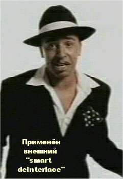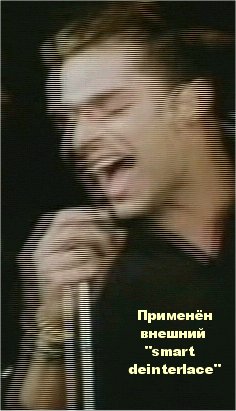 Здесь можете посмотреть моё сравнение с применением "deinterlacing mode". Многие считают, что применение внешнего фильтра "smart deinterlace" - лучшее решение... Я провёл эксперимент: взял 2 клипа (в одном клипе "smart deinterlace" - удачен, а во втором - нет). Во внутреннем "deinterlace" применялась функция "Blend" (к сведению). Оба клипа были захвачены в одно и то же время друг за другом, с одинаковой полной резолюцией (768x576) и с одинаковым data rate=7 Мб/c На этих картинках визуально можно посмотреть разницу между этими двумя, вроде на первый взгляд одинаковыми, клипами... Отсюда делайте выводы, что и когда надо использовать! Все клипы, видимо, разные по структуре??? (бывают фильмы переделанные из прогрессивного в чрезстрочный или возможно был сделан "telecine" - метод преобразования частоты кадров из 24fps в 30fps). Я перед кодированием делаю визуальную проверку в правом окне VirtualDub (окно выходного видео), чтобы просмотреть какой "deinterlace" фильтр лучше применить для текущего клипа. Пойдём дальше и добавим ещё фильтр "re-size" - уменьшение или увеличение изображения