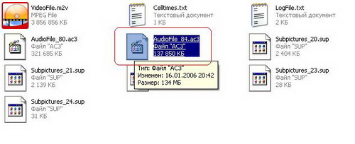 - аудиопотоки в порядке индексации .0х81.ac3 .0х84.ac3; (Внимание нужно загружать дорожки полученые в программе AC3 Delay Corrector)