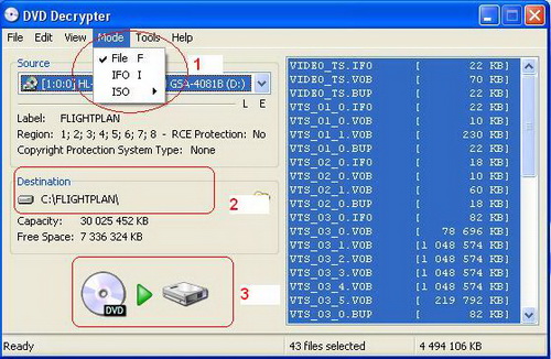 Будем считать, что все эти программы уже заинсталлированы на нашем компьютере (все они бесплатные, и найти их поиском не составит большого труда. Большинство из них можно скачать на www.doom9.org) Итак, приступим. Копирование DVD на HDD (если он у вас еще не на нем). - устанавливаем режим копирования Mode > File
