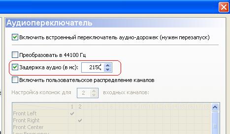Здесь выставляем опережение или опоздание в миллисекундах. В данном случае у нас звук опережал изображение на две с лишним секунды, поэтому мы выставляет положительное значение, а точнее 2150 милисекунды (1000 миллисекунд одна секунда, положительные значения delay приводят к задержке звука, отрицательные к опережению), жмем [OK] и возвращяемся к просмотру, смотрим все ли у нас в порядке. Если нет - то изменяем значения Delay в ту или другую сторону пока звук не будет полностью совпадать с изображением. В итоге запоминаем конечное значение подобранного Delay. Тоже самое проделываем со следующей дорожкой. Исправление значение Delay для аудио дорожек. Для этого используем программу AC3 Delay Corrector.